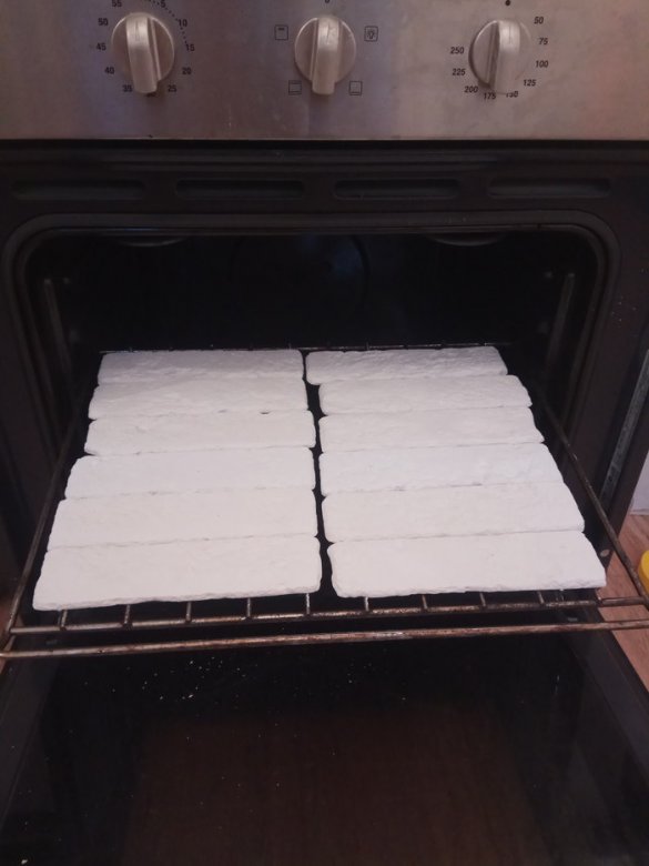 В общем я думал-думал и придумал как высушить кирпич. Захерачил его в духовку и поставил на 50 градусов))) И ждал пока не побелеет. Примерно за пару часов он дошел до кондиции, крепость нормальная, вроде не перегрел. Я пробовал и на 250 градусов сушить, теряет свойство видимо гипс, крепость хреновая становится. 50 вроде оптимально.