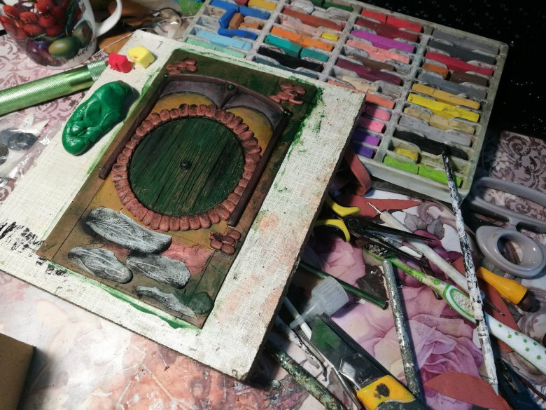Сегодня будет мастер-класс по созданию обложки для блокнота из полимерной глины. В этот раз будем создавать дверку Бильбо.