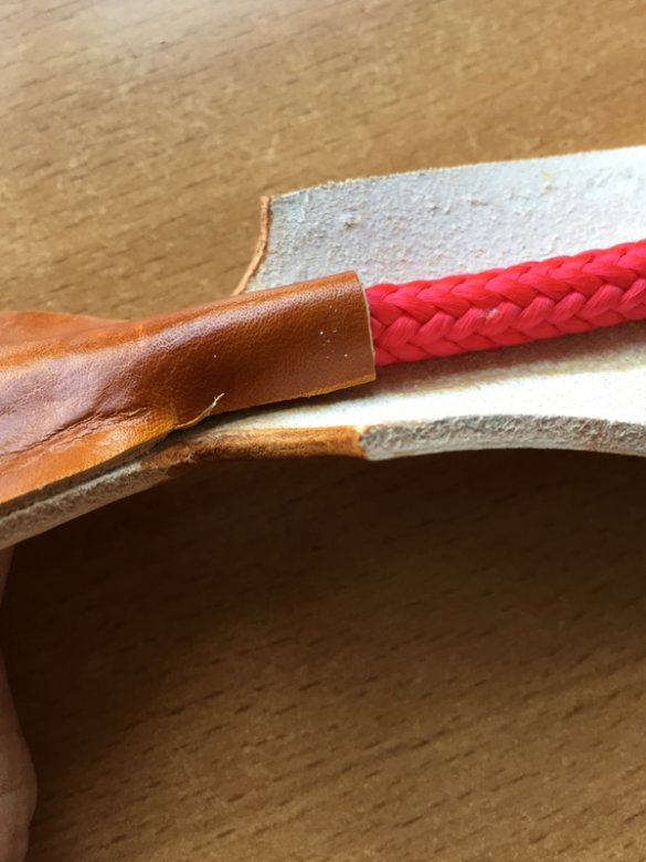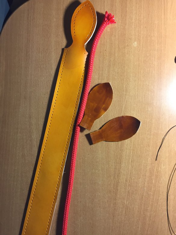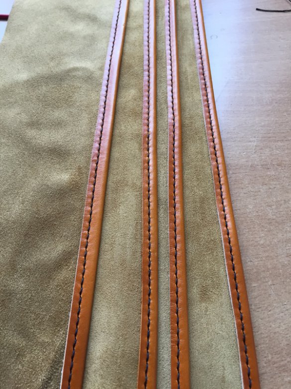 и собираем ручку в одно целое. После сборки полируем края и пришиваем каждую ручку к своей части. На выходе имеем такой вариант)