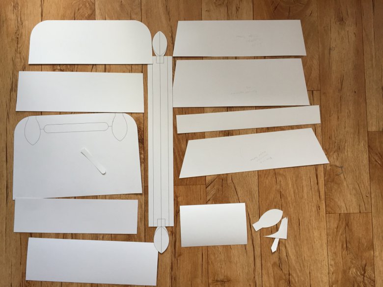 В конечном итоге пришёл к выводу что надо бы по подробнее рисовать. Далее делаю выкройку в Autocad уже с размерами. Дальше беру полученную выкройку и иду в РК и печатаю её на ватмане, потом вырезаю аккуратненько по линиям и получаю в общем то вот это: