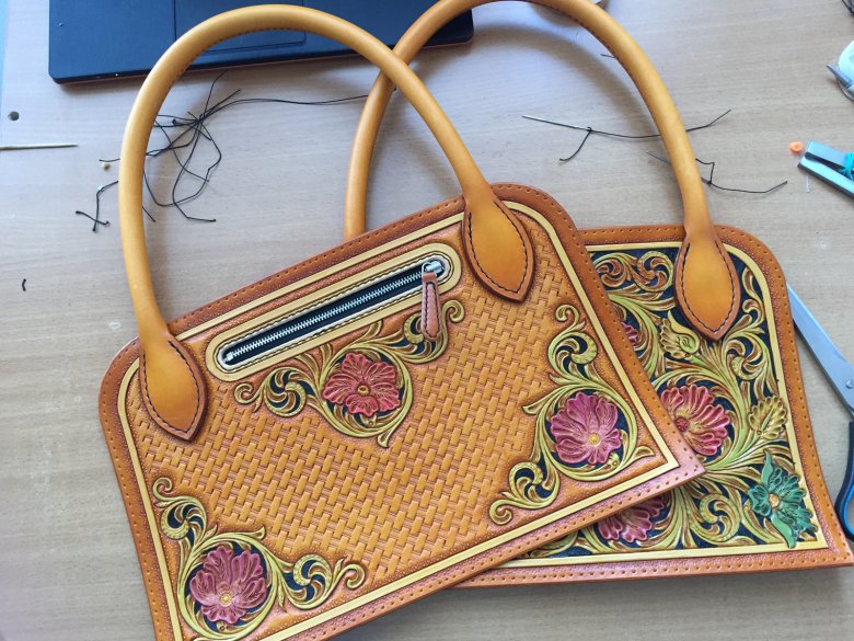 Оооооххх блин потрепала она мне нервы))) в общем то сам виноват, не много не правильно разметил отверстия под строчку, а точнее они оказались чуть смещены по отношению к отверстиям на сумке, поэтому пока пришивал сдал зачёт по "горячим словосочетаниям сапожника". Но это ерунда ибо на выходе мы получили вот такую сумочку.