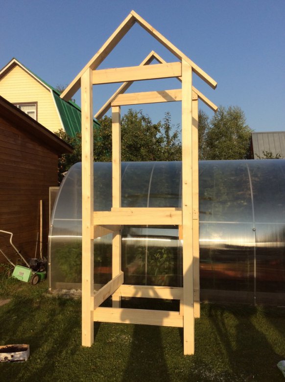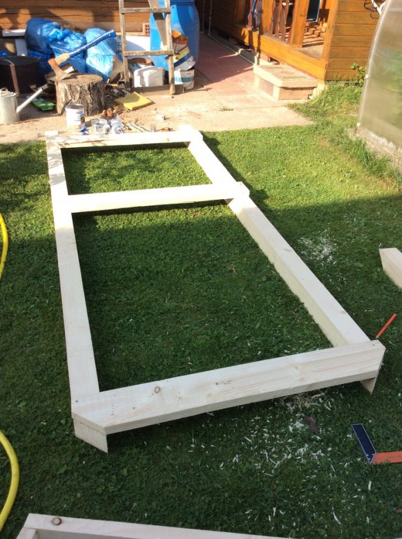 После всю эта конструкцию я разобрал и убрал. Фишка в том, что собирал ее я на даче у отца недалёко от дома, а вот повезу ее к себе на дачу, а это 300 км. Там уже вкручу сваи, постелю газон и установлю на пмж всю эту громадину.