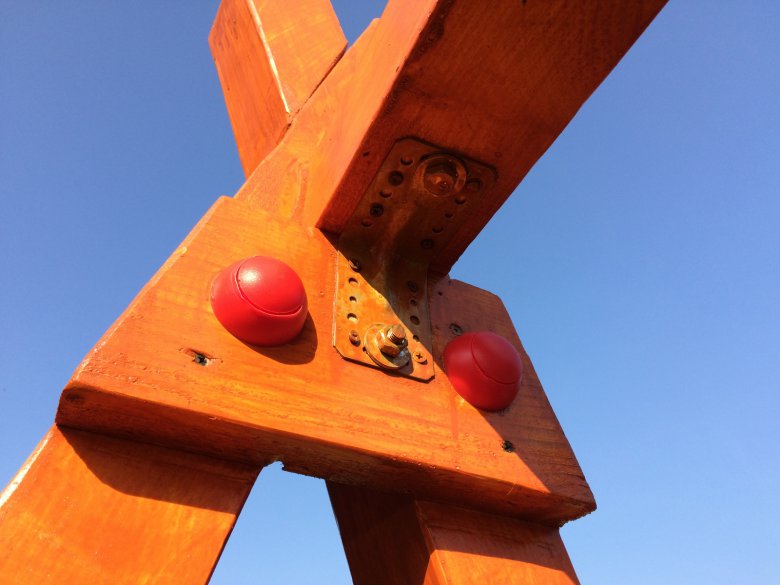 Далее фиксируем соединения болтами М12. И заботливо прячем все в "орешки".