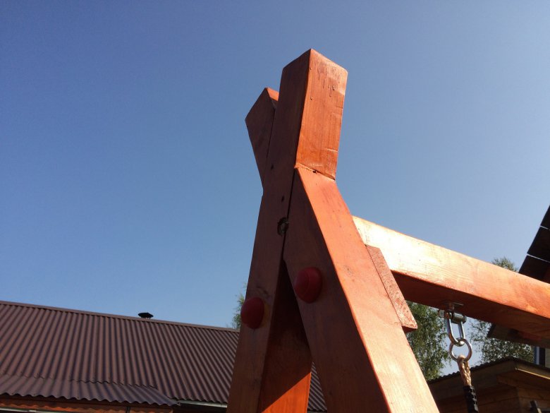 Поднимаем Л-образную стойку и закрепляем перекладину.