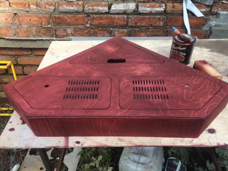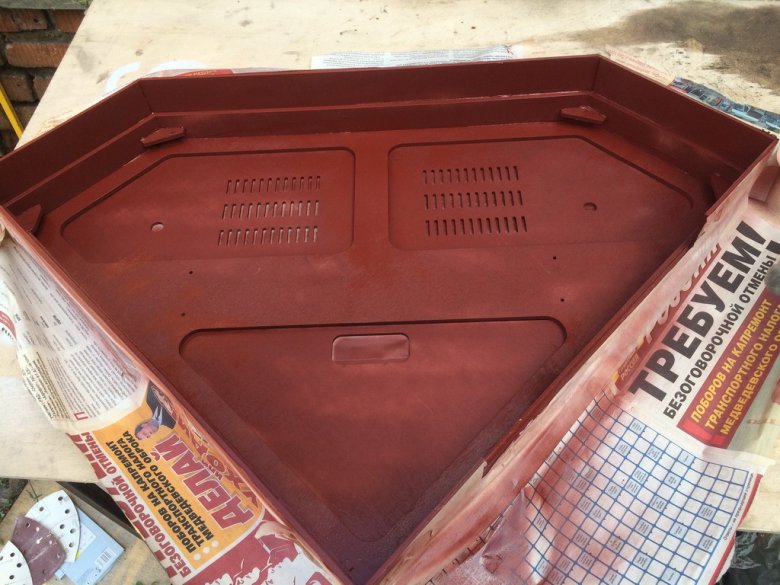 Выдался погожий денек и во дворе мастерской крышку как следует отшлифовал и подготовил к покраске: