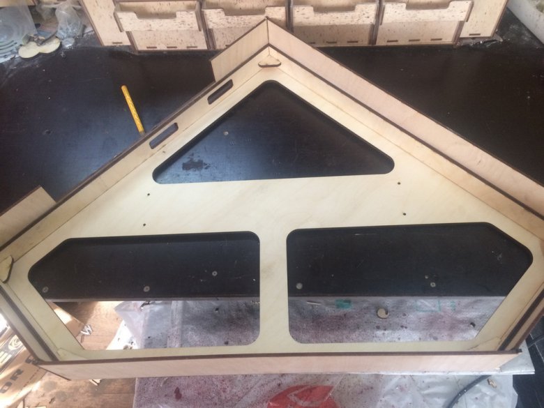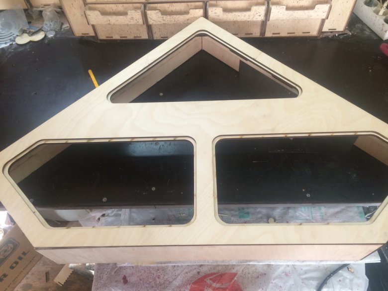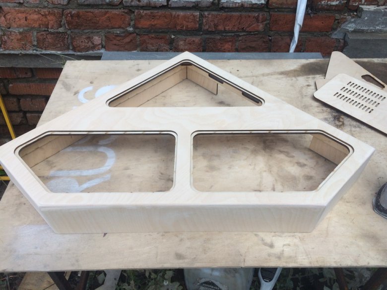 Сам процесс попила фанеры на лазере и самой сборки показывать не буду, скучно это и однообразно. но в начале склеилось вот это: