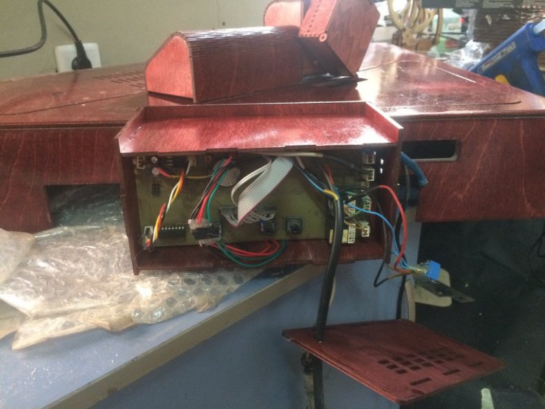 Кнопки управления раньше располагались на самой плате контроллера, но тут решил их вынести отдельно. Сами кнопки - обычные комповые микрики, клавиши так же сделаны из фанеры: