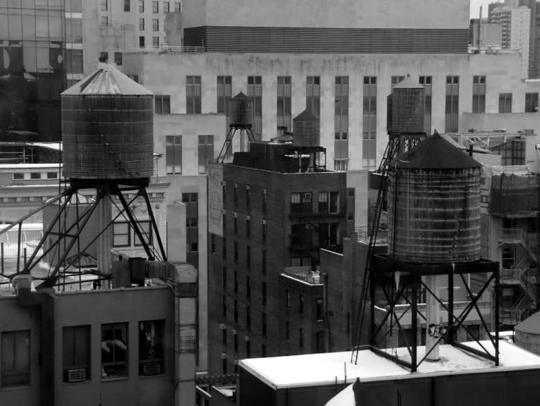 Посмотрите на эту фотографию. Многие из вас сразу узнают классические очертания этой конструкции на крыше: это традиционная для Нью Йорка водонапорная башня. Они довольно привлекательны своими старомодными формами, из-за чего часто фигурируют в фотографиях и отчётах приезжих, как эдакие открытки из давно ушедшей эпохи, случайно дожившие до наших дней.