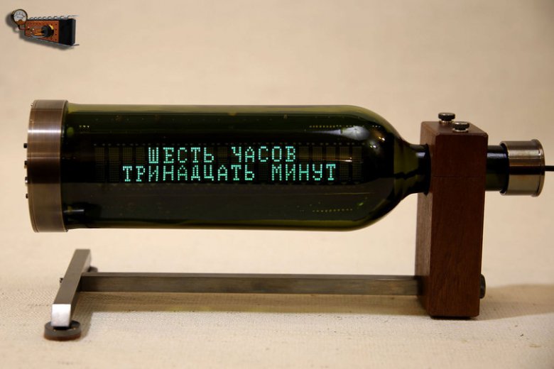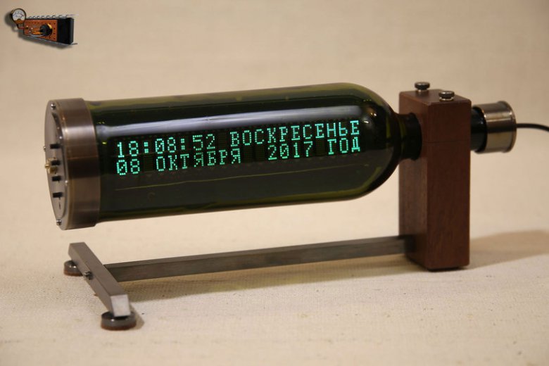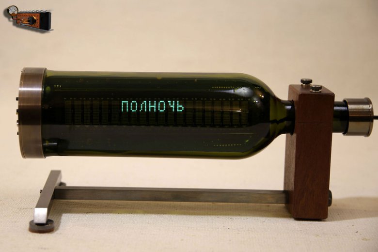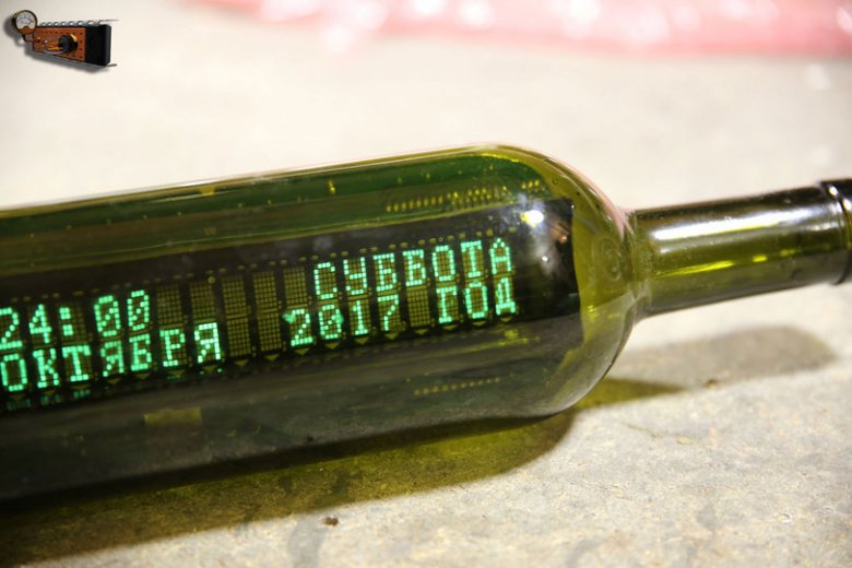 Долго думал над корпусом и наконец придумал разместить плату в бутылке. Это кораблики в бутылке делают гинекологи на пенсии, а мы сделаем часы в бутылке! Как раз зелёное стекло добавит контрастности дисплею.
