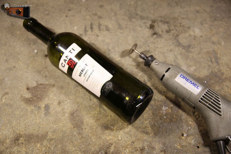У бутылки из-под вина отрезаю донышко алмазным диском.