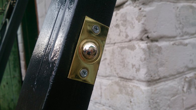 Защелку использовал типа "шарик". Крепил к калитке посредством резьбовых заклепок