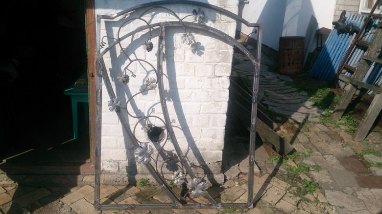 В боковых "отделениях" будет профлист, а в среднем будет "расти виноград". Для крепления профлиста внутрь рамы приваривается четверть