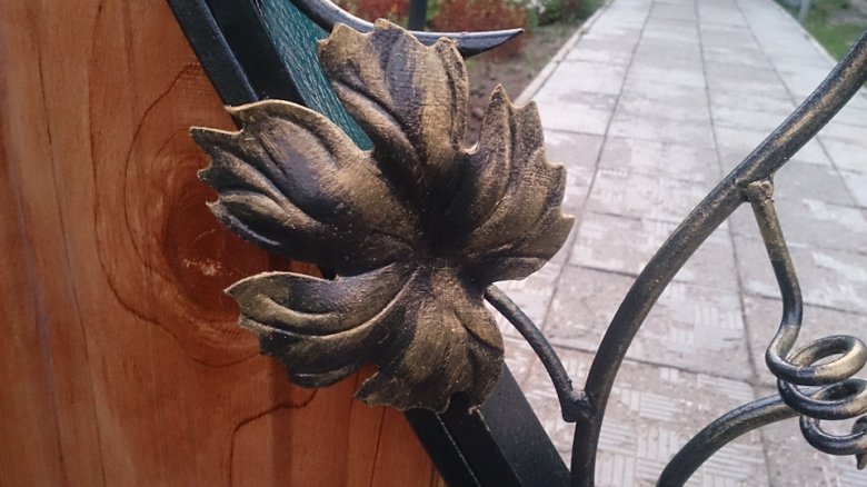 Стебель гнулся из прутка 10мм, ответвления к листьям из проволоки 6-7мм. Гнул на холодную при помощи ножек старого газового котла и приблуды, именуемой в простонародье "мартышкой"))