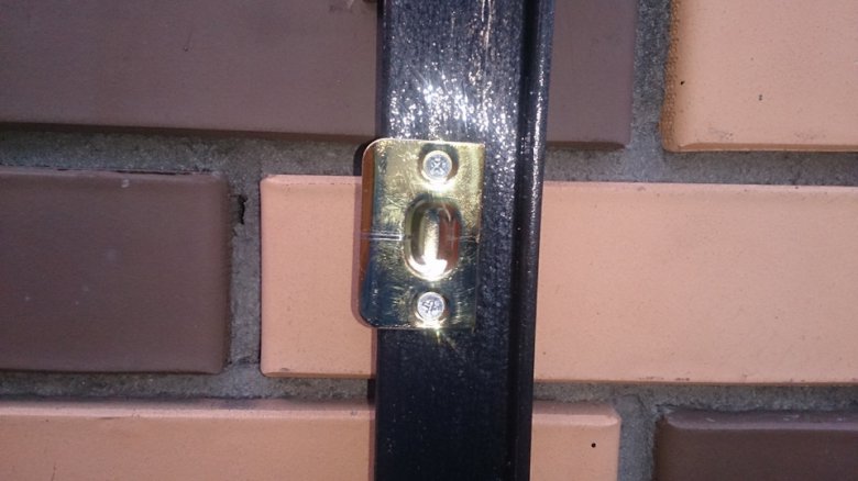 К закладным были приварены вертикально профильные трубы 40*20. К одной из них крепится калитка на петлях, ко второй защелка. Для предотвращения дребезга профиля к четверти был приклеен бытовой уплотнитель