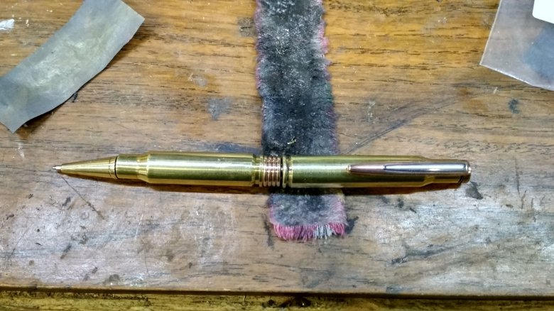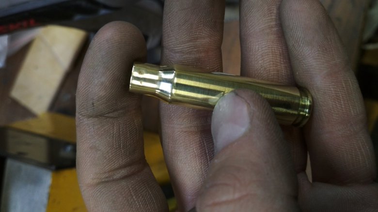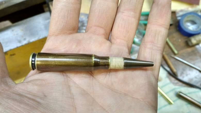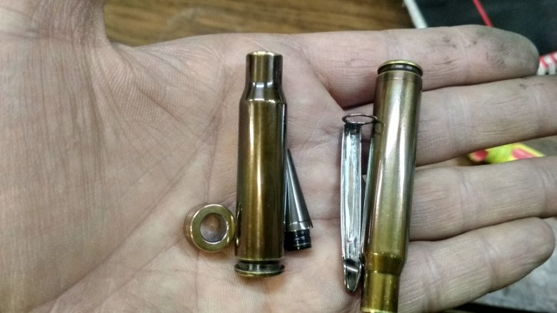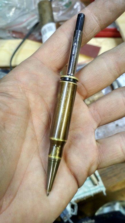 Много раз видел ручки из гильз, но большинство из них - откровенный трэш от школьников, которым кишит ютуб. Спора нет, это хорошо, когда молодежь применяет руки в нужном направлении. Но на выходе получается нечто подобное. =)