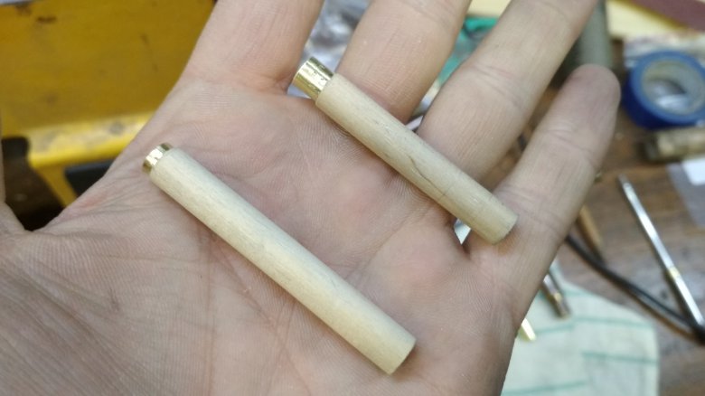 Чтобы закрепить компоненты ручки нужно выточить внутренние вставки в гильзы. Делать будем из березки родимой..