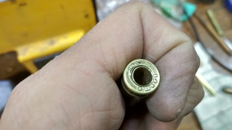 Сверлим гильзу. В тыльной части достаточно толстая латунь.