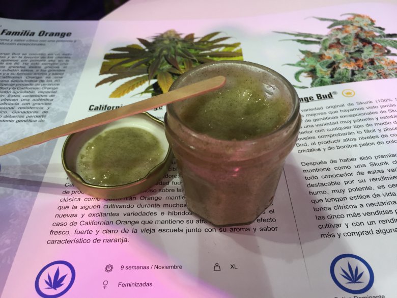 Пчелы используют смоляные железы каннабиса (трихомы), чтобы сделать прополис, который является многофункциональным смолистым материалом, используемым на различных поверхностях и в сотах пчелином улье. После того, как пчелы были натренированы использовать смолу каннабиса как обычный, повседневный материал, смола проникла в каждую клеточку пчелиного улья и, следовательно, и в сам мед. Анализ меда показал 30мг ТГК в каждых 10гр. Сам по себе мед имеет зеленый цвет.