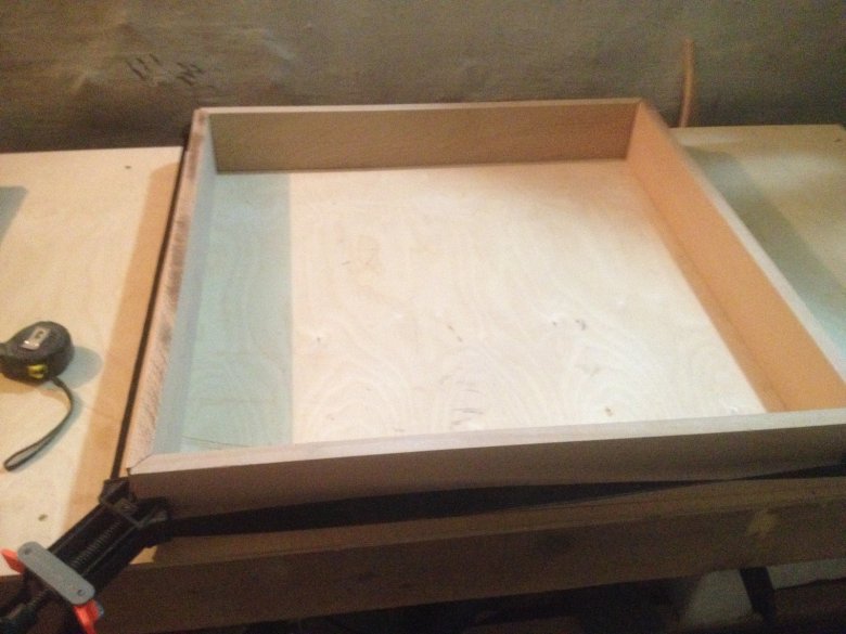 Из распиленных вдоль щитов собрал основание, углы так же сделал фрезой под 45 градусов.