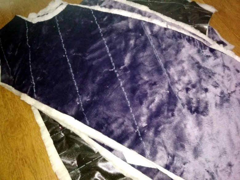Разметила линии стежки на подкладке, чтобы не перекашивался утеплитель с подкладкой при носке, ну и красиво смотрится. Все линии сколола с утеплителем, чтобы при шитье на машинке ничего не уезжало.
