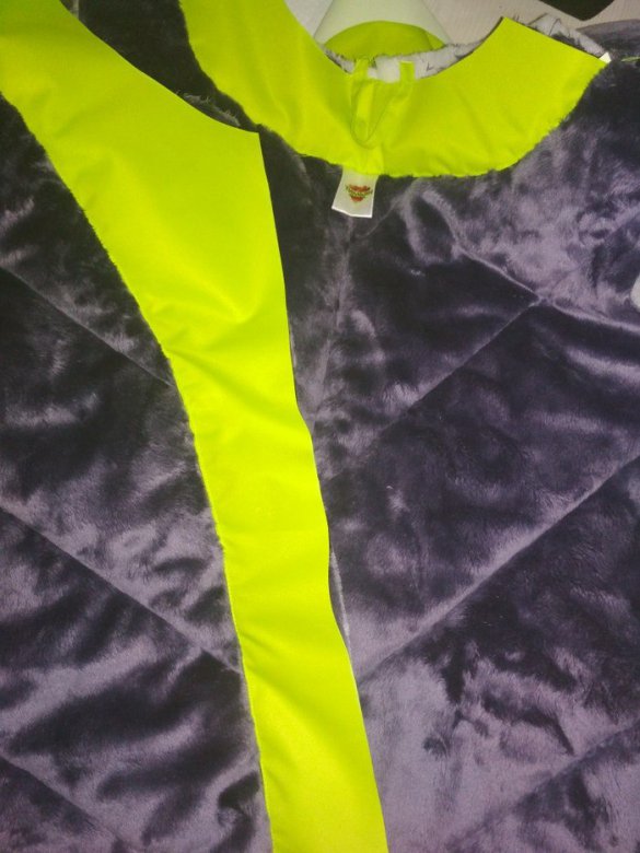 После того как я все простегала, я срезала по краям весь лишний утеплитель и начала сшивать детали и пришивать обтачку. Пришила фирменую бирочку))