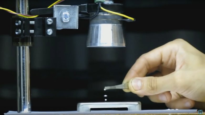 Если на определенном расстоянии от излучателя установить отражающею поверхность, то излученные и отраженные волны будут складываться. Образуя в воздухе левитацию.)