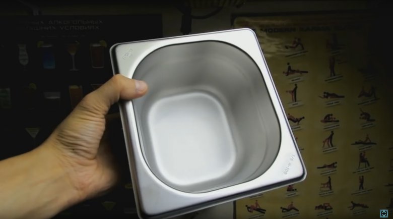 Сама ванна это обычная гастроемкость. Объем такого корыта 1.5 л. (1/6 H-100).