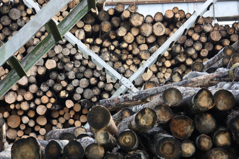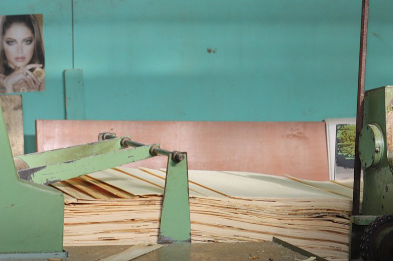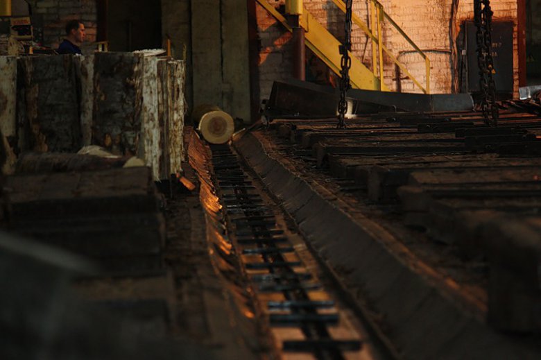 Меня с детства мучил вопрос — как получается из дерева выточить маленькую спичку? Оказалось, все довольно просто. Берут бревно, режут его на тонкие листы, листы режут уже на палочки для спичек. Сами бревна с торцов красят известью, чтобы не портились.