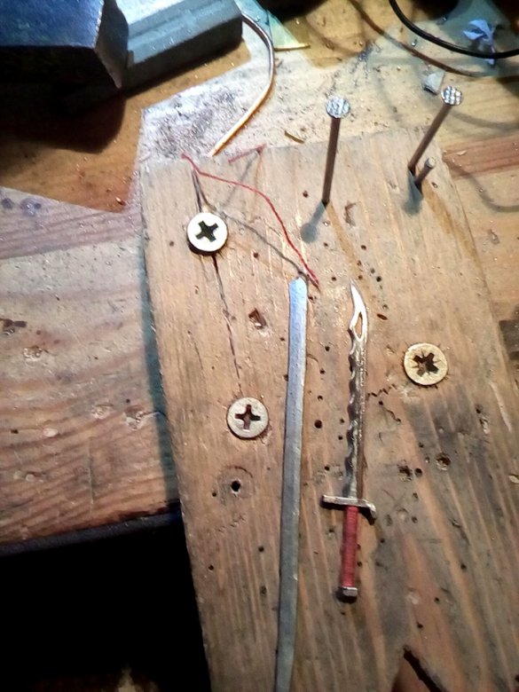 Имелось желание сделать миниатюрный меч, инструменты и несколько кусков проволоки - стальной(3 мм) и латунной(3.5 мм).