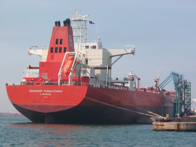 Танкер "Губернатор Фархутдинов" у причала. Порт Фос, Франция.