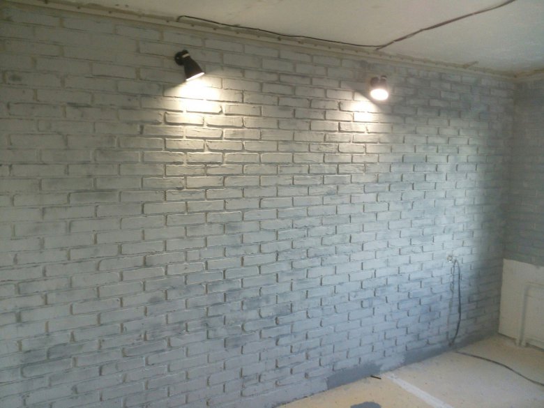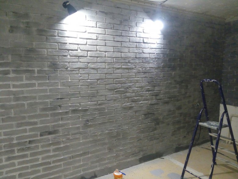 Далее чуть затемнял краску, прокрашивал группы кирпичей. Затем затемнял еще и повторял)