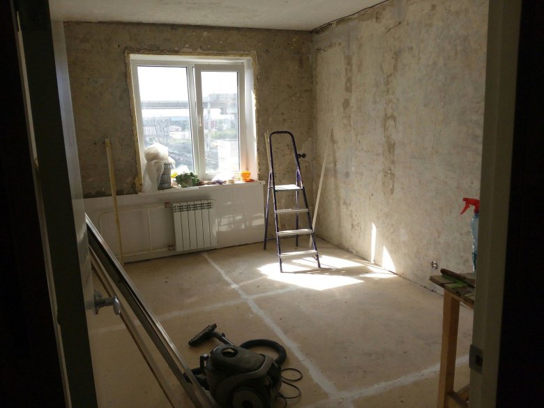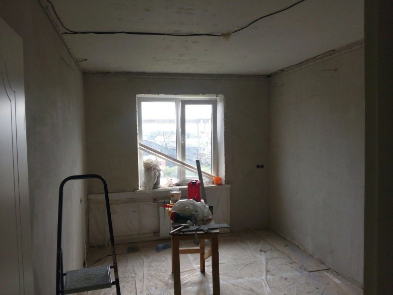 В итоге в первый день я вынес всю комнату, ободрал обои, снял линолеум с пола, потолочную плитку.