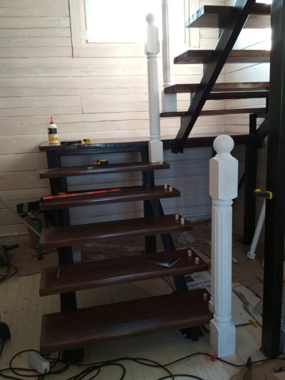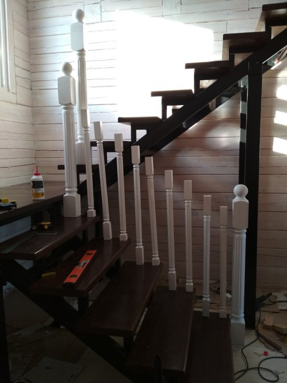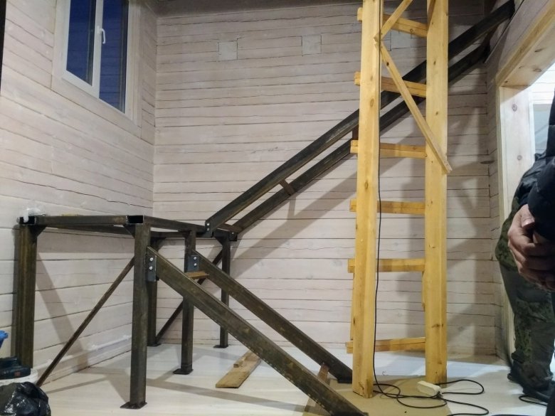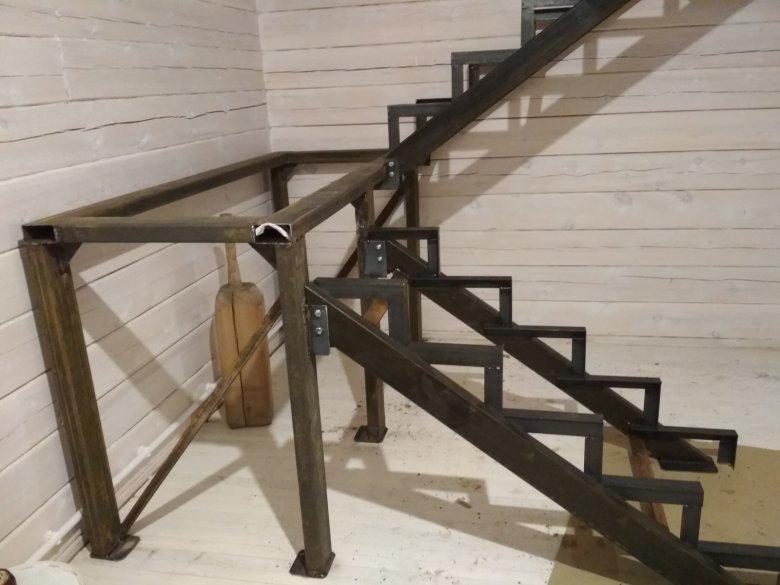 Покрасив металлический каркас эмалью поехал за ступеньками и балясинами в магазин.