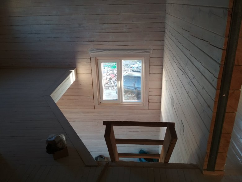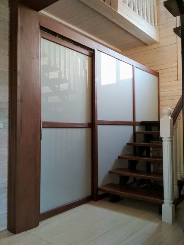 С одной стороны лестницы смастерил Тамбур, деревянно-стеклянную (как это делал уже другая история).