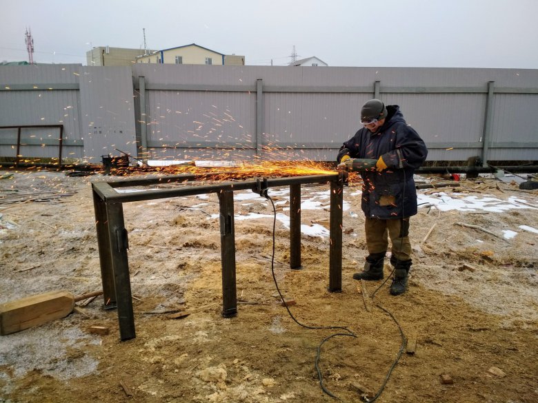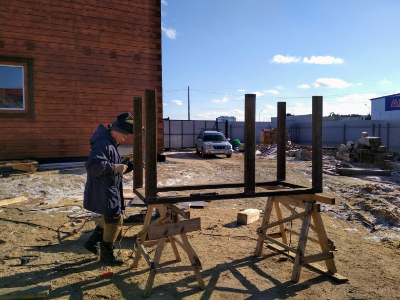На сварочные работы попросил помощи у тестя. В силу отсутствия сварочного аппарата и опыта.