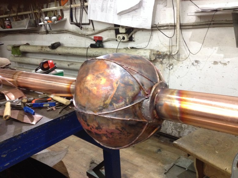 И на последок ковшик, сделанный вторым методом, части вытяжки и футбольный медный шар, сделанный без единой капли припоя)