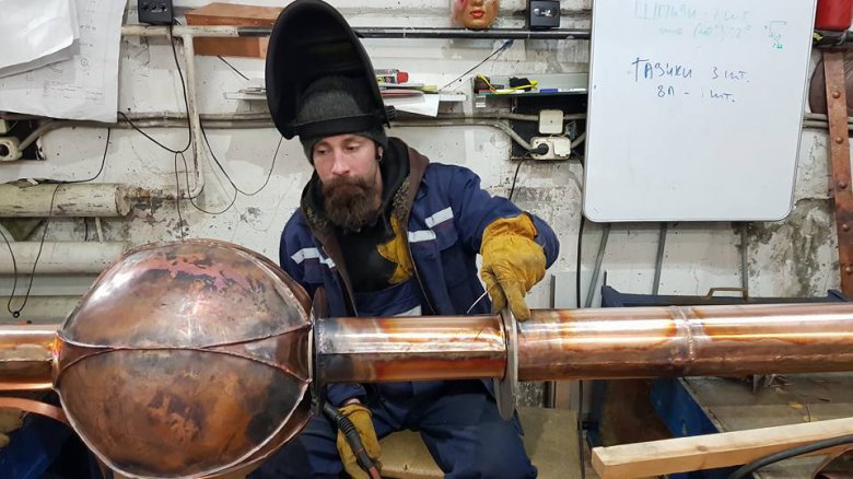 Потом все это сваривается. В нашем случае приваривали к шпилю аргоном.