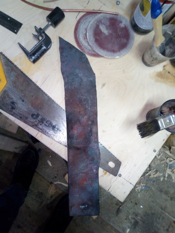 Заготовкой снова стал кусок рессоры, который в процессе ковки я выпрямил, отпустил сужения на лезвие и остриё.