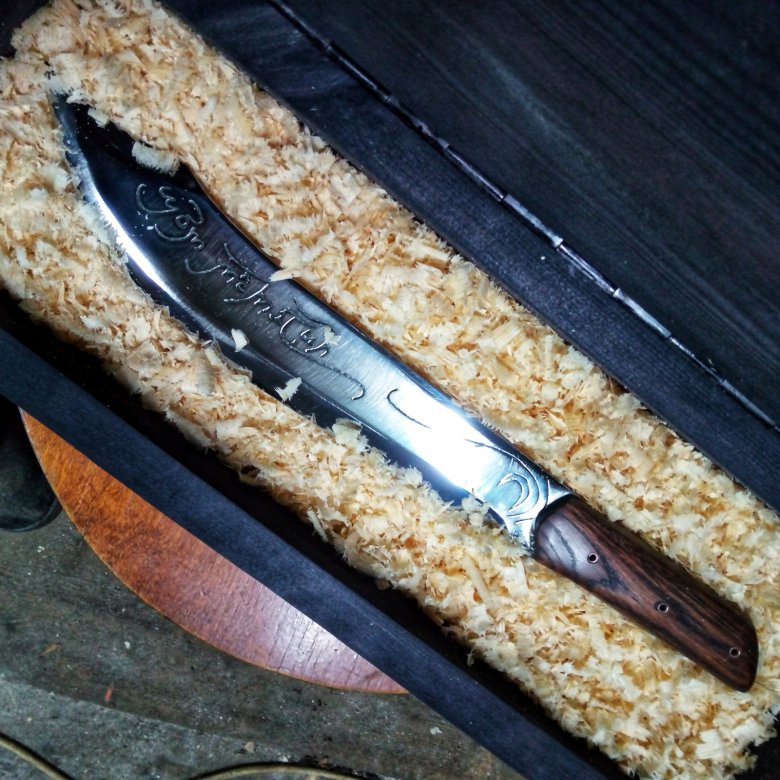 Никакие ножны не делал, пока нет кожи и навыков (в ближайшие выходные еду за кожей, буду пробовать). Вместо ножен, сделал ящик-футляр.