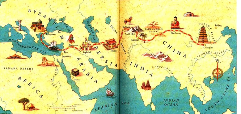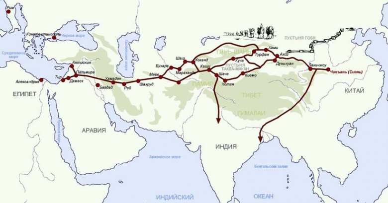 Великий шелковый путь, связывающий Китай и города Центральной Азии со странами Средиземноморья, в течение многих веков играл главную роль в процессах товарного и культурного обмена между этими регионами. Зародившись во II веке до нашей эры как торговый путь между Китаем и городами Ферганской долины, позднее он приобрел статус важнейшей транспортной артерии между Востоком и Западом и просуществовал до Средневековья.
