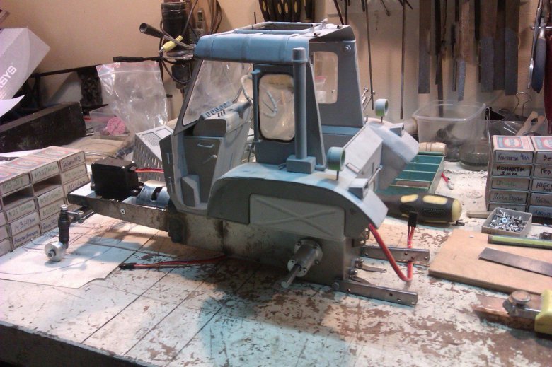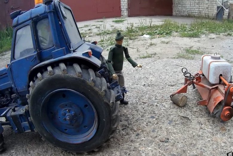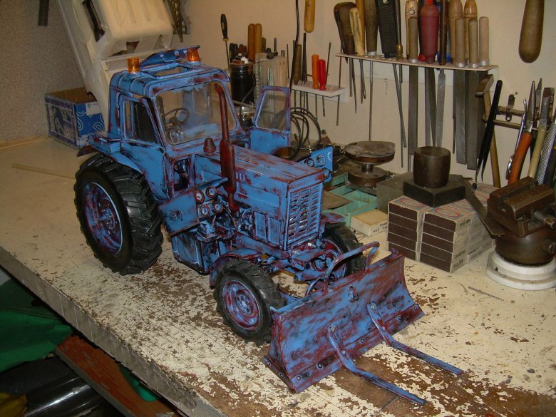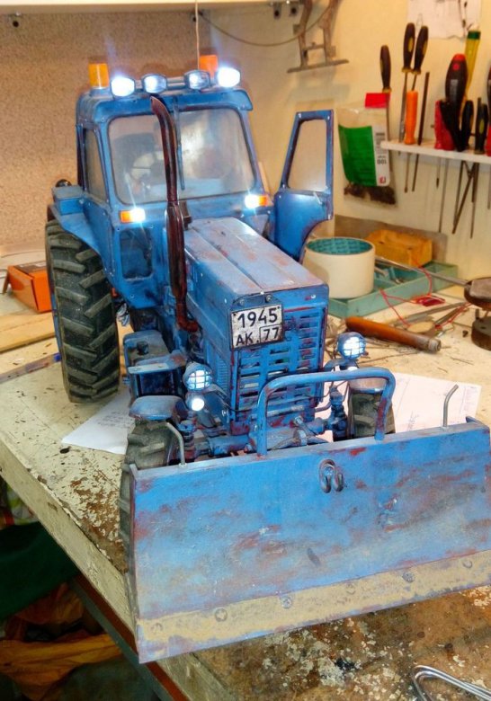 Модель исполнена в масштабе 1:10. Полностью функциональна на радиоуправлении занимающей 9 каналов. Рабочий передний отвал, подъем - опускание, изменение угла атаки, можно использовать как вилочный погрузчик. Двухскоростная КПП. Рабочая навесная система. Рабочая коммунальная Щетка.