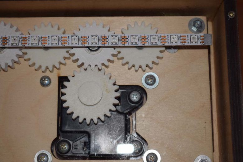Шестеренки также разработаны в Компасе и напечатаны по заказу на 3D-принтере. Двигатель, вращающий шестерни, это мотор-редуктор от заслонки отопителя ВАЗ 2110. Червячная пара дает большое усилие с малым током потребления, что как раз и надо для моих целей.