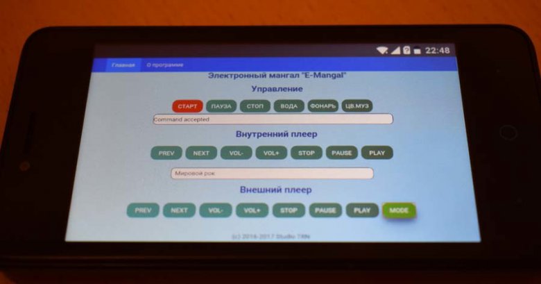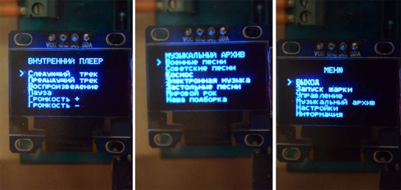 — Для внутреннего плеера использовал DFPlayer mini. Он управляется командами через COM-порт. Не очень им доволен, но зато маленький и простой. И для конкретного применения в E-Mangal более чем достаточно.