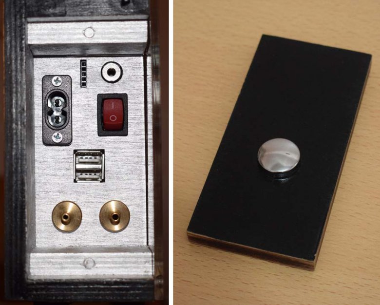 — Усилитель мощности цифровой на PAM8403. Аудиосигнал от внутреннего и внешнего плееров микшируется и подается на усилитель мощности. При необходимости заглушить какой-либо канал просто отдается команда MUTE соответствующему модулю.