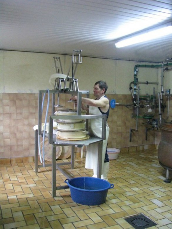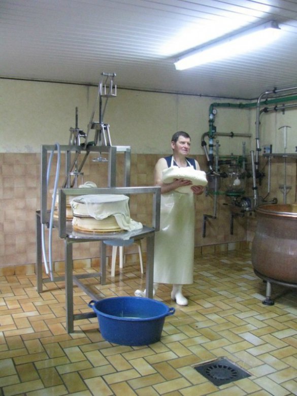 Три месяца сыр лежит в погребе, потом его сдают в кооператив (нехватка места), и там он дозревает еще месяца три, потом продают. Летом коровы пасутся в горах, на местах лыжных трасс. Фермер живет в это время во втором шале в горах и там же делает сыр. На ферме работает всего два человека - он и его жена. Ни отпусков, ни выходных, ни поездок (коров надо доить дважды в день), но фермер сказал, что ему очень нравится его жизнь и больше ничего ему не надо, никаких вояжей.
