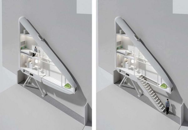 Его ширина составляет от 92 до 150 см, глубина — 10 метров, а высота – 9 метров. И хотя общая площадь этого трехэтажного строения занимает не больше 15 кв. м., там разместилось все, что необходимо для жизни: миниатюрная кухня, столовая, спальня и рабочее место, туалет и душ.