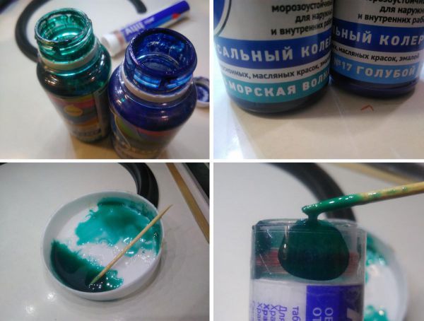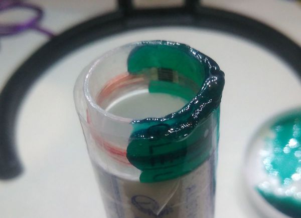 Заливаем другим цветом, на всякий случай оклеив колпачек скотчем.