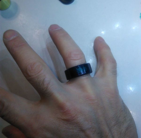 Одеваем на палец, пробуем поднести к телефону с NFC поджав пальцы… Фигушки! Не срабатывает. Снимаю с пальца, подношу вплотную к телефону – ну хоть так то работает. Попробуем увеличить количество витков. Уже отрываю штатную проволочку и мотаю более практичным проводом.