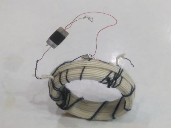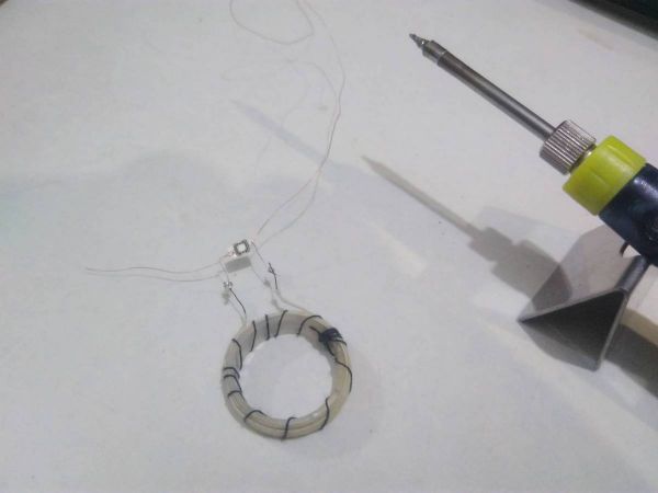 Это как вообще? Второй конец обмотки ведь просто в воздухе висел! В голову начинают лезть умные мысли о всяких колебательных контурах, что де катушка со свободным концом, возможно замыкается через конденсатор, в виде которого выступает палец. Впрочем, думаю – догадки скорее всего неверные, а в голове уже забрезжила какая-то фантазия про расчет резонансной частоты...