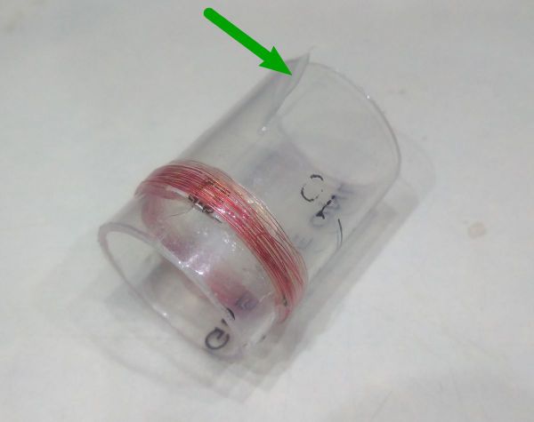 Теперь нужно сформировать внутренний радиус, а то обмотка то прям у поверхности. Идеально подошел колпачок от гигиенической помады)